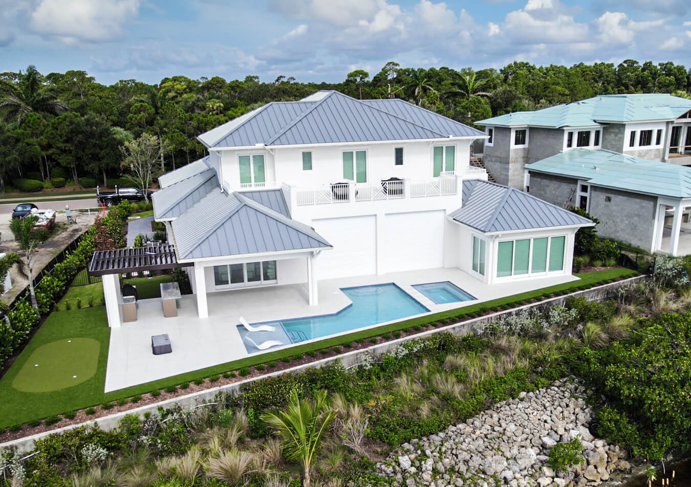 Feel immersed in nature within the confines of your home as water gracefully cascades from the pergola to the pool.