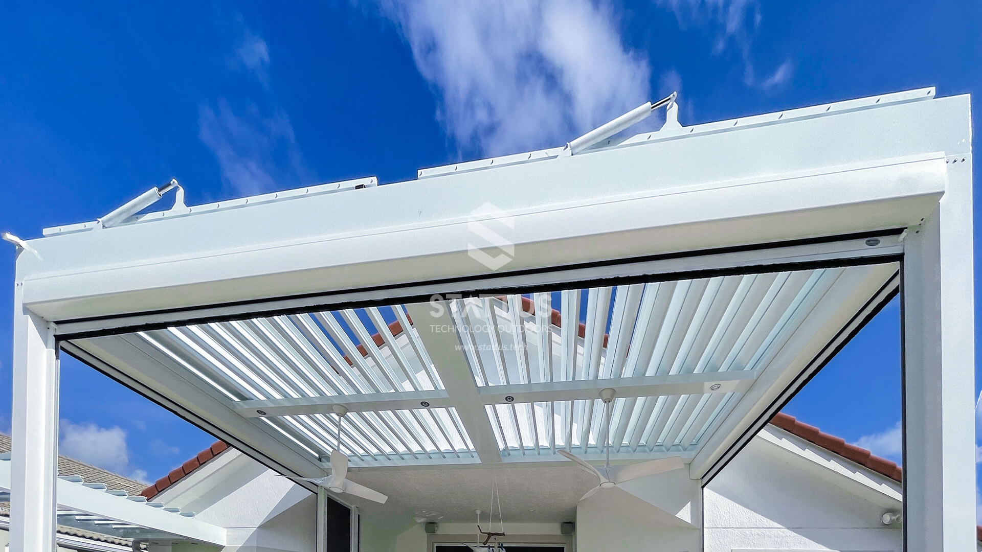 “STATTUS motorized aluminum louvered pergola transformed my outdoor space with elegance, functionality, and low maintenance. Highly recommend”.